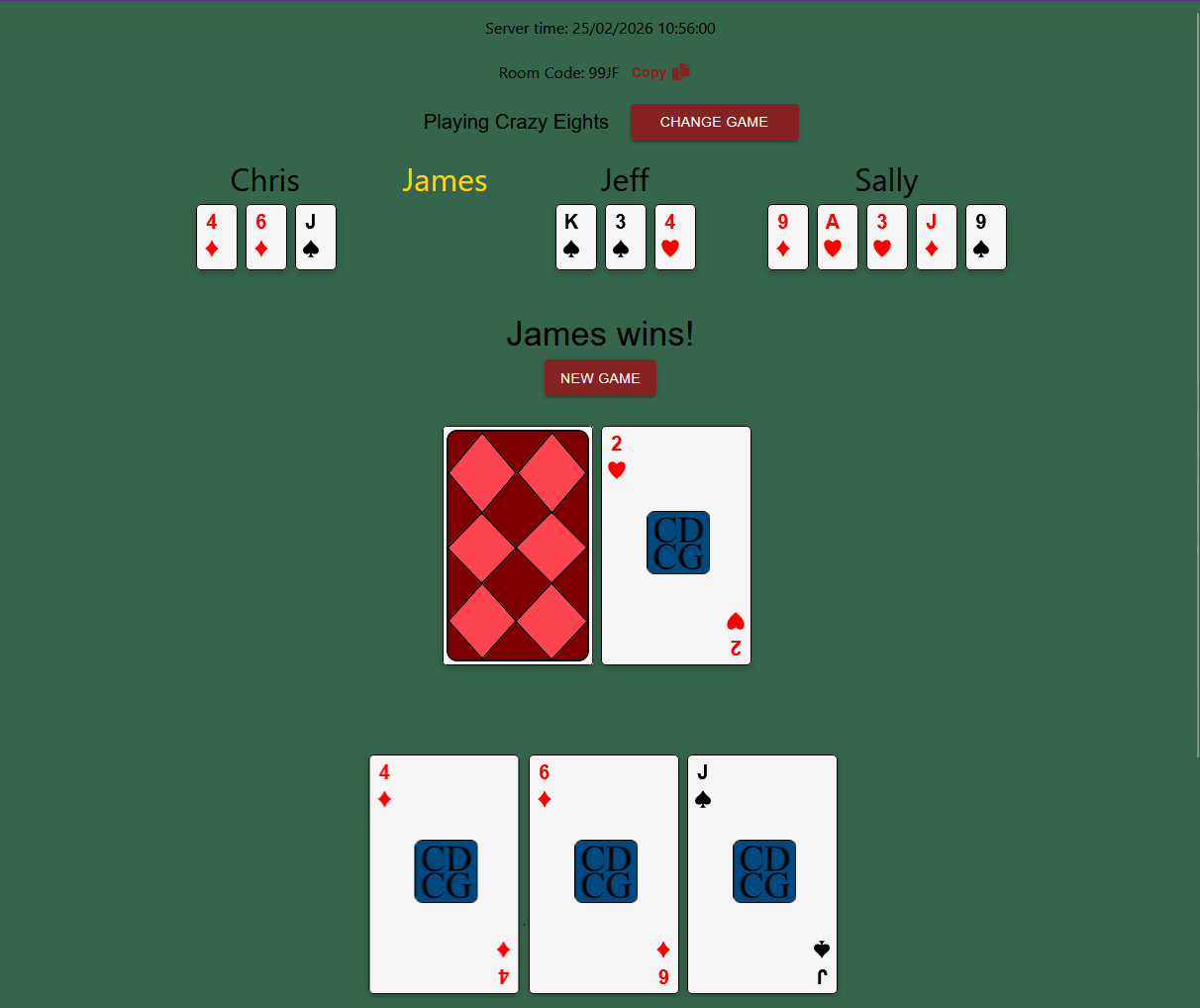A web app where you can create and join rooms with other users to play a range of card games in real time